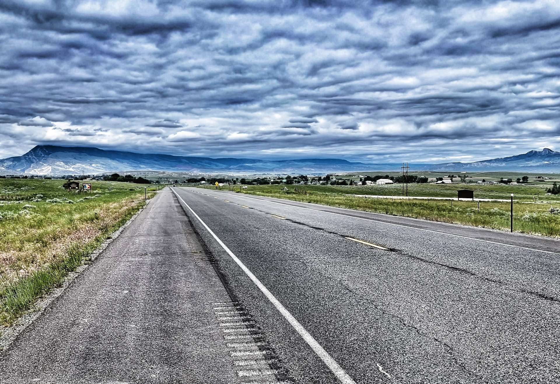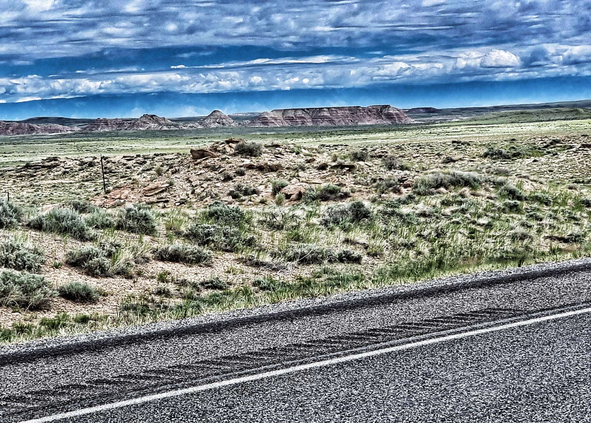 There will be no services other than this single rest area. We would prefer a 3rd option, but of the two we have, cycling on the Interstate is the least bad & is allowed as far as I’ve been able to establish. We took a final look behind us to Powder River Summit, before setting off for a 66 mile ride on the Freeway.