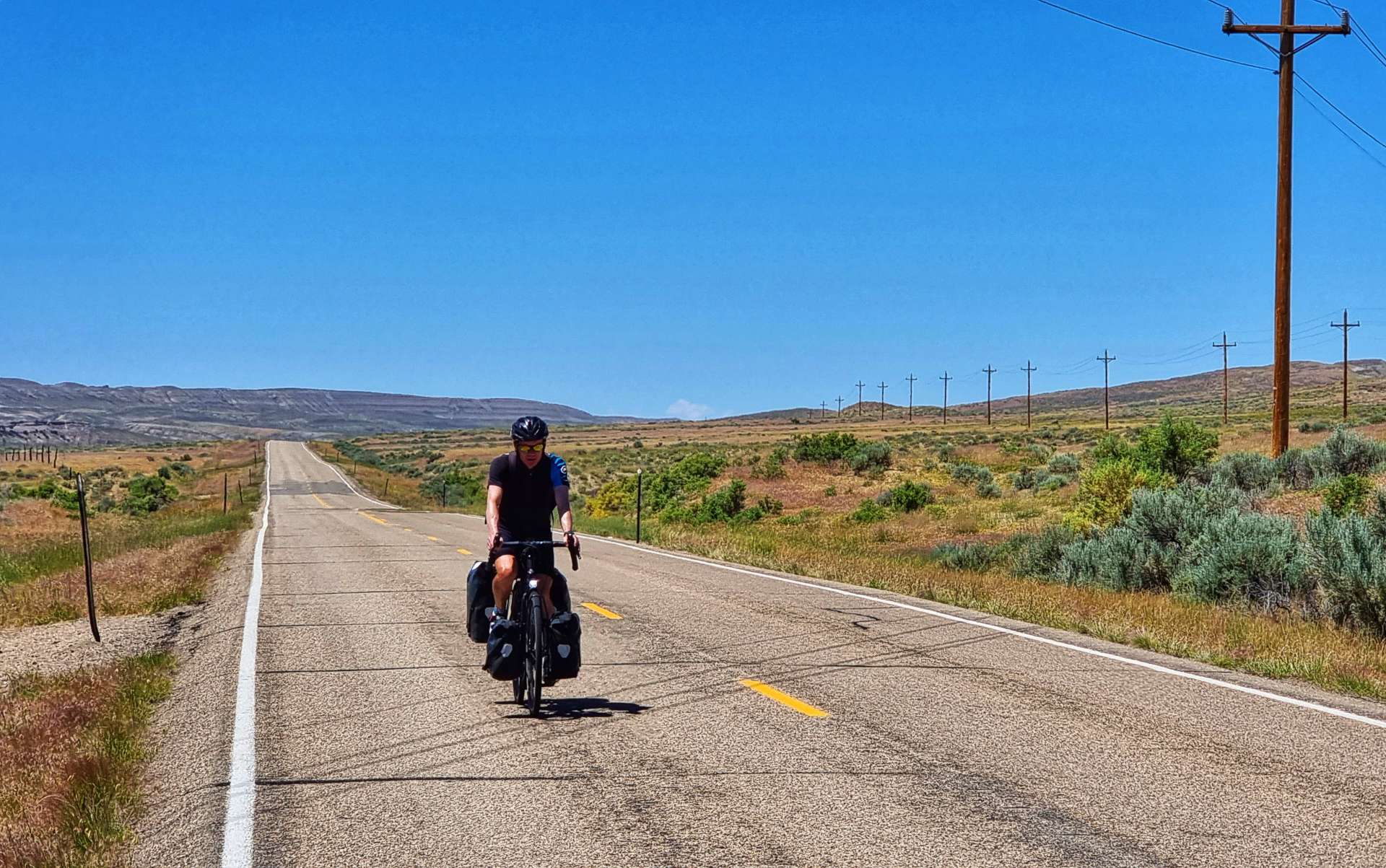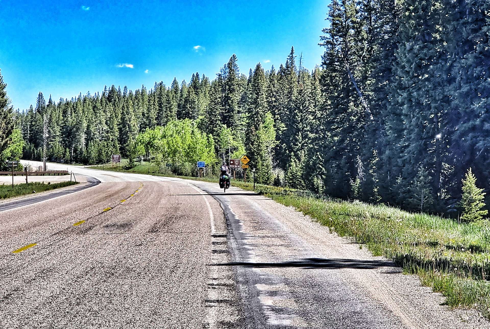 As we left the lake behind, we hit our steepest climb of the entire adventure – a 16% section that went on for about 5 minutes & was at the very limit of what I can climb on a fully loaded steel bike! I was doing about 3 mph up this ramp & was close to having to weave across the road to keep going.