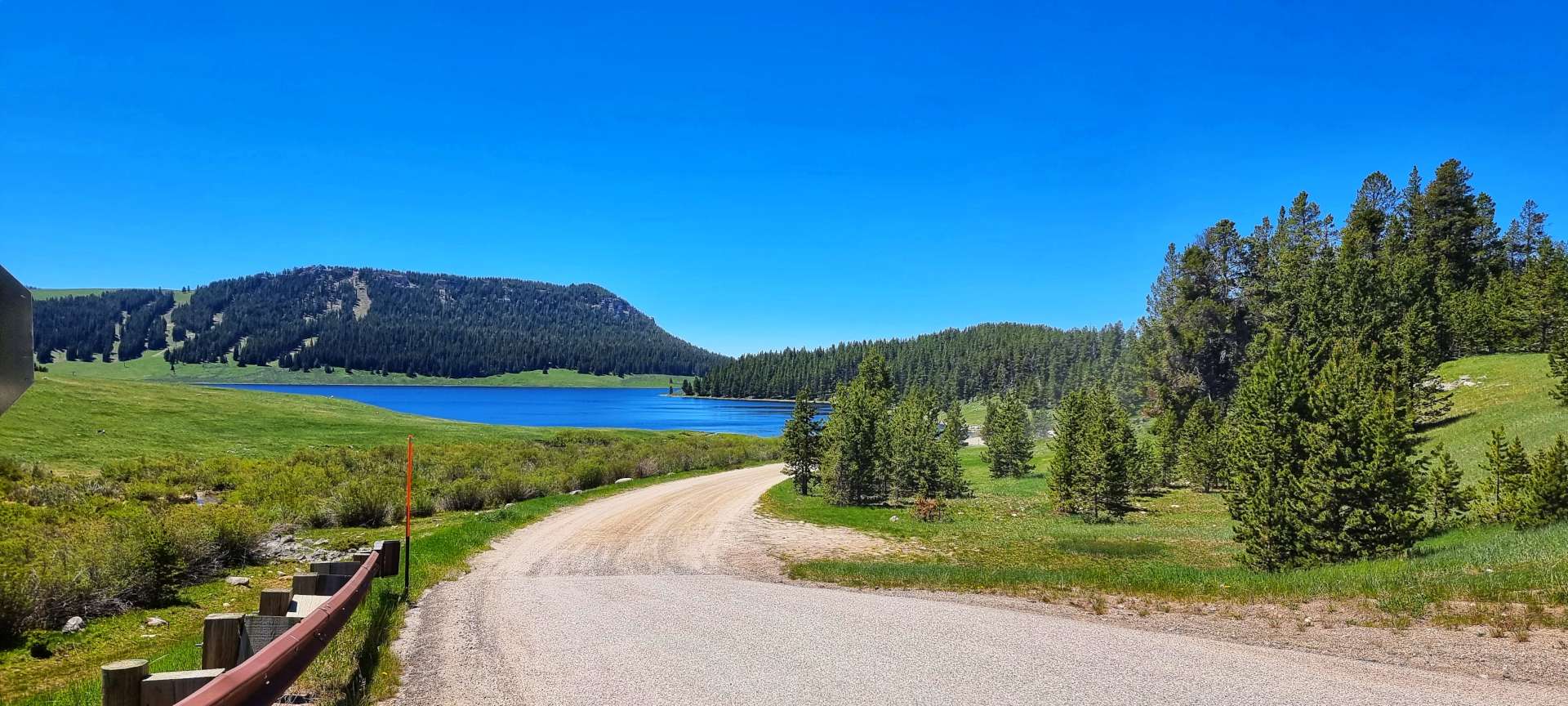 I took a final photo of the idyllic lake opposite our hotel, then we made our way across town & headed into the forest as the road carved through the trees & followed the rising & falling contours of the land.