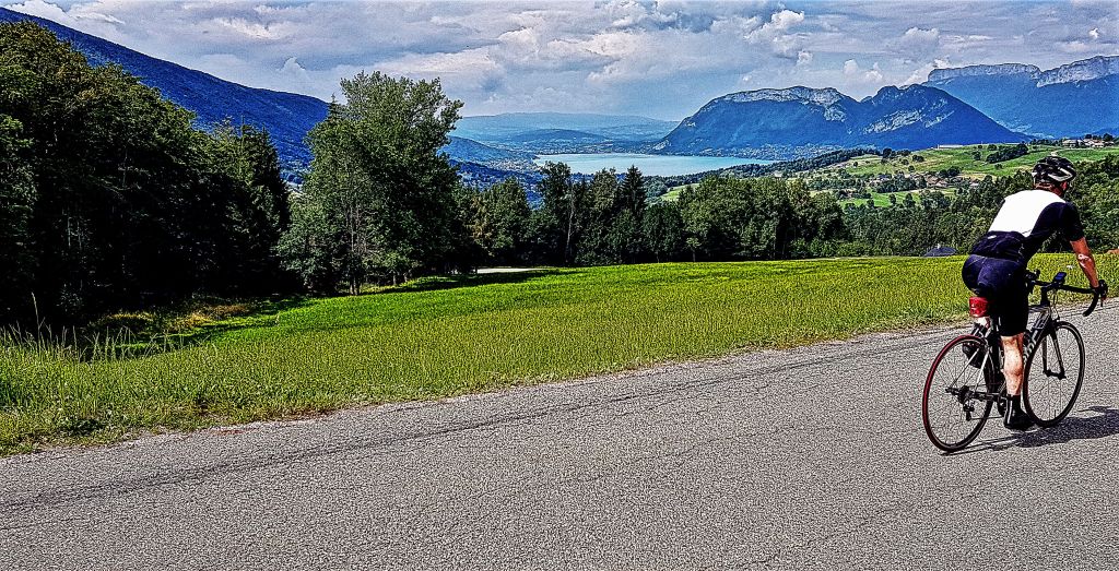 My Mallorcan injury kept me off the bike throughout May & early June, so I had a few concerns about my cycling fitness ahead of our 11 day summer trip to Lake Annecy & St Jean de Maurienne. Our luxurious base in Talloires was the perfect launchpad for 5 days exploring quiet mountain passes as I built up some fitness for the huge climbs to come. Hopefully the photos below will show why I love visiting the big mountains – they also show my left elbow being held together with kinesiotape from my crash in April.