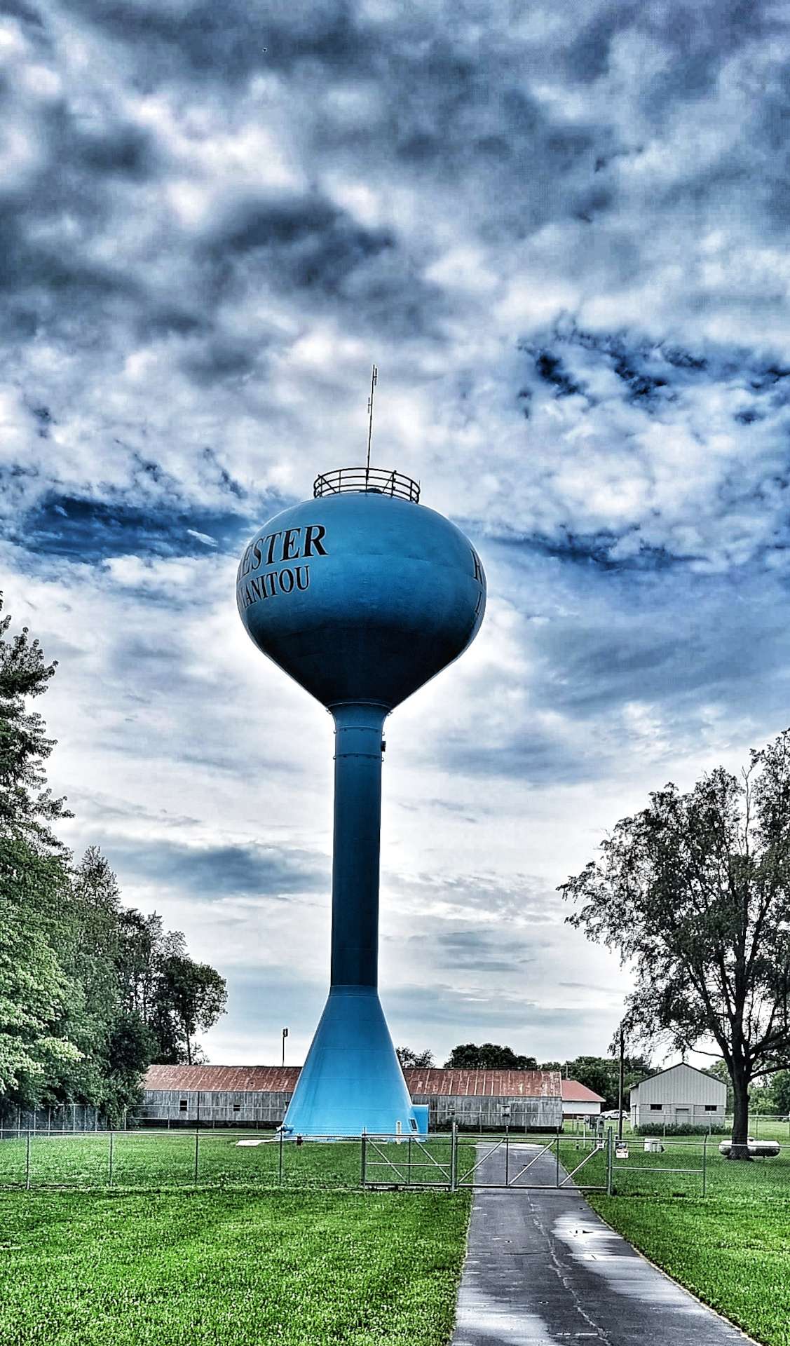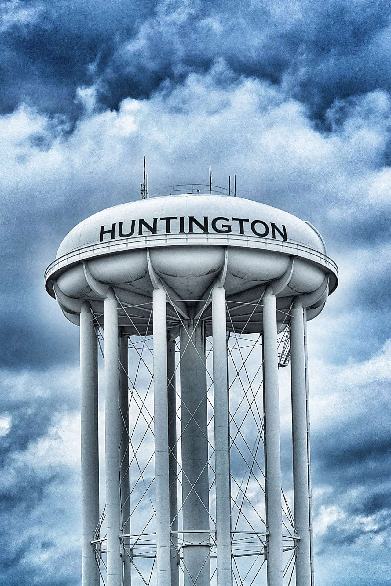 We continued on quiet lanes all the way to Huntington, where we made our way across town to our motel for the evening. I stopped to add a new type of water tower to my photo collection.