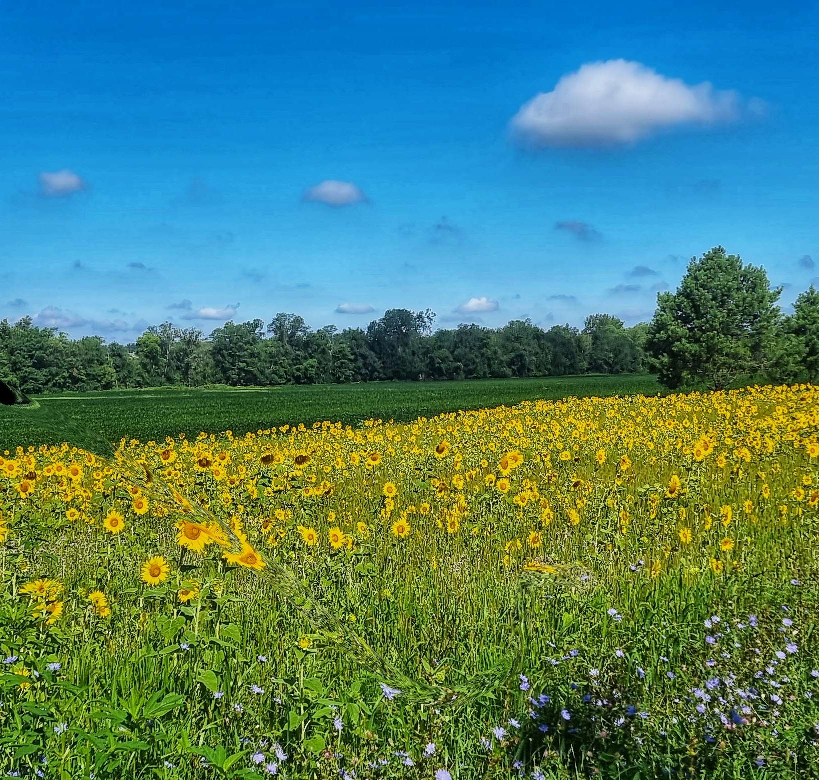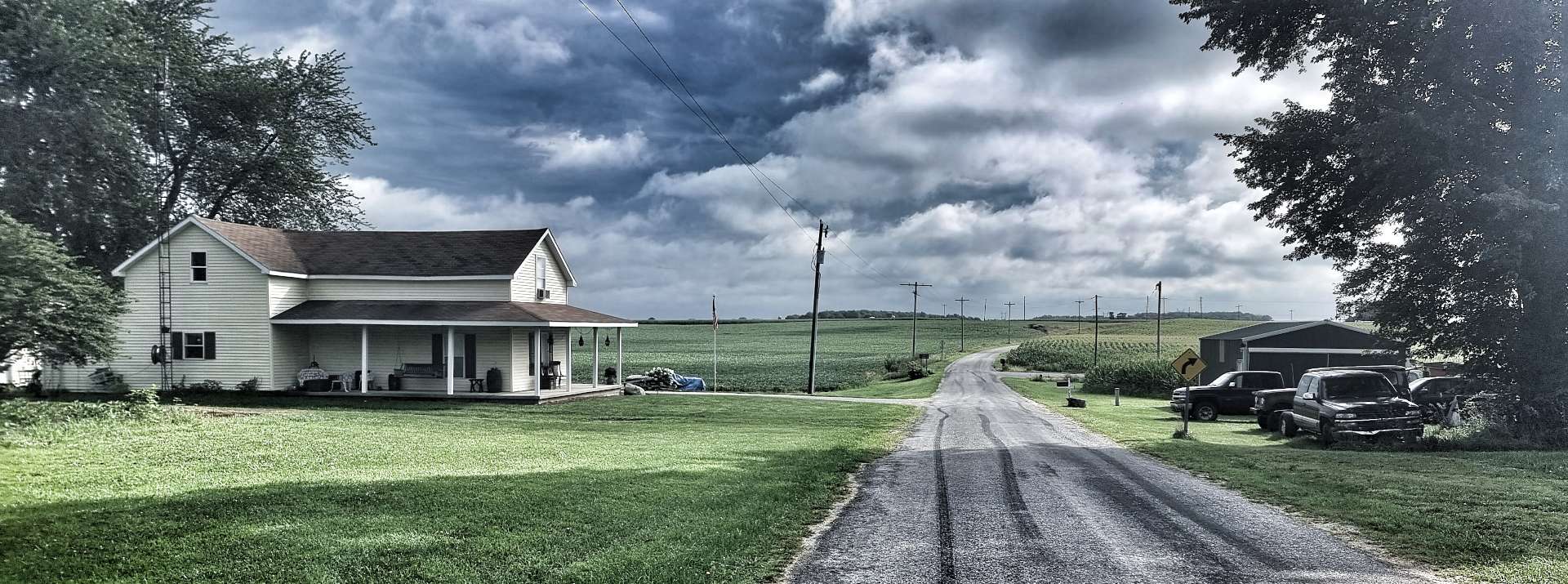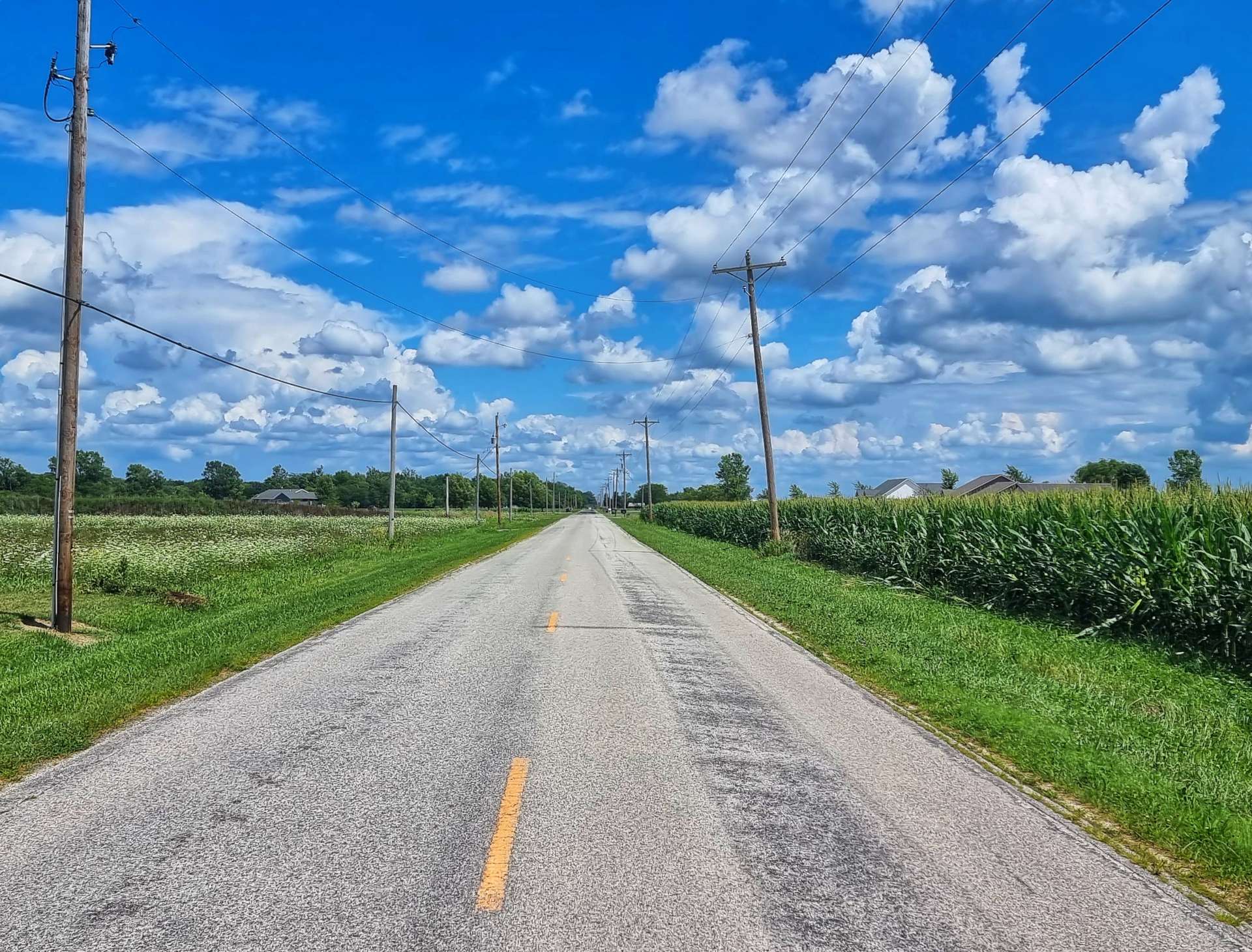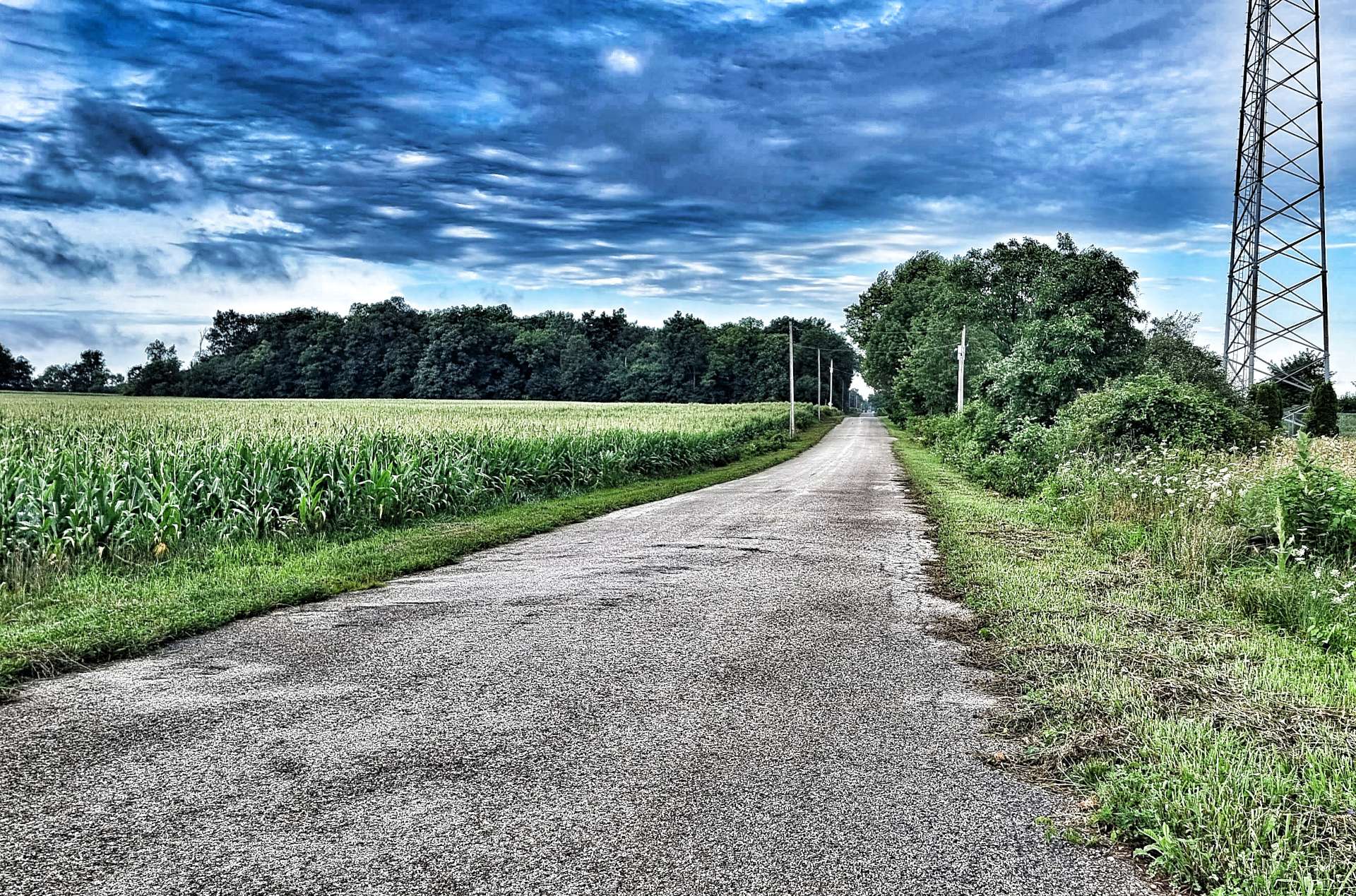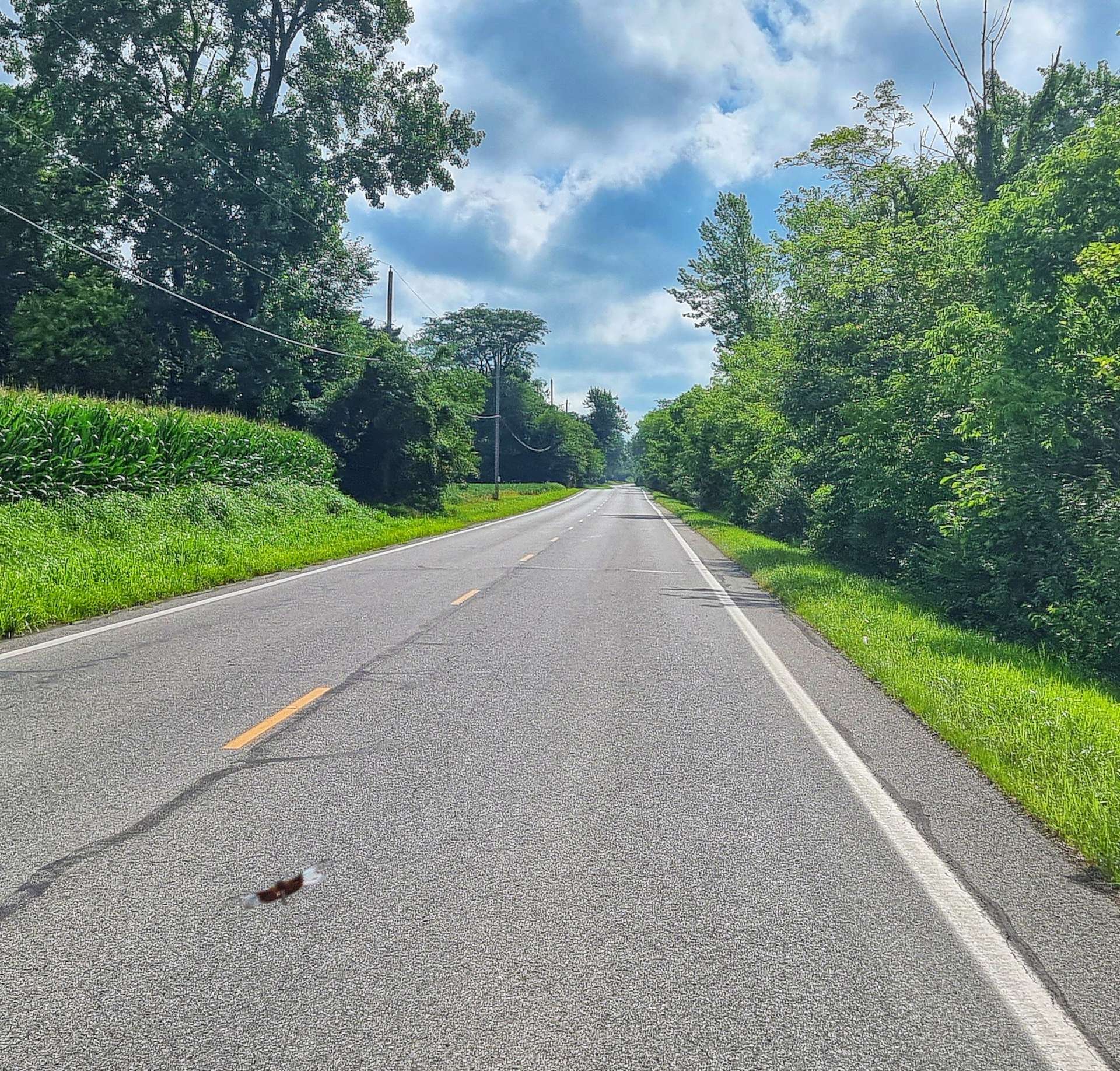 As we left the State Park behind, we returned to farmland, with the familiar corn fields laid out in front of us like a patchwork quilt. Although the rain of earlier in the day was long gone, the humidity remained in the air & whenever we stopped to take a photo our arms seemed to leak sweat, as if an internal tap had been opened!