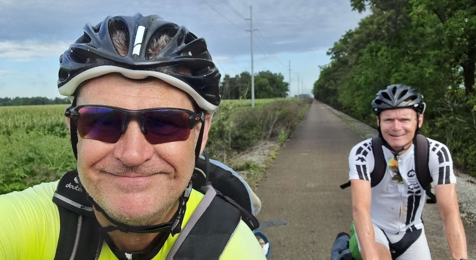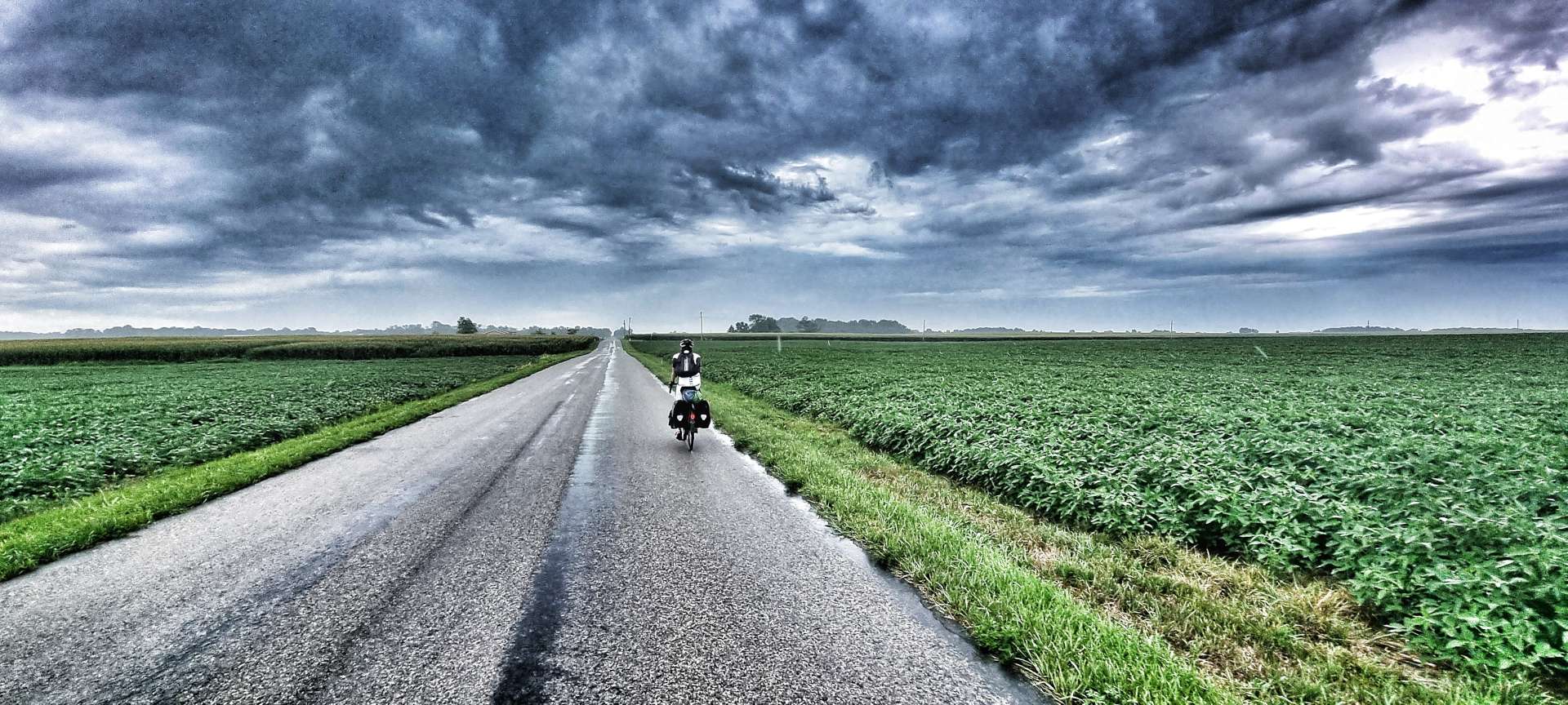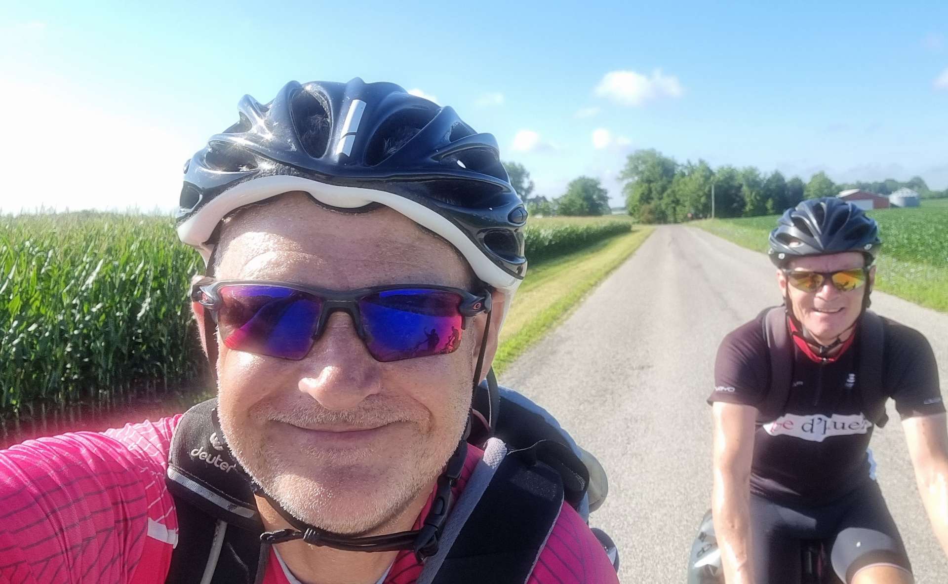 The skies had been closing in since we set off from Rochester & about 20 miles into the ride we felt the first spots of drizzle begin to fall. The temperature had remained in the mid-70’s, so we were happy enough carrying on riding in just our shorts & short sleeved jerseys as we continued on our way between the soya bean plants.