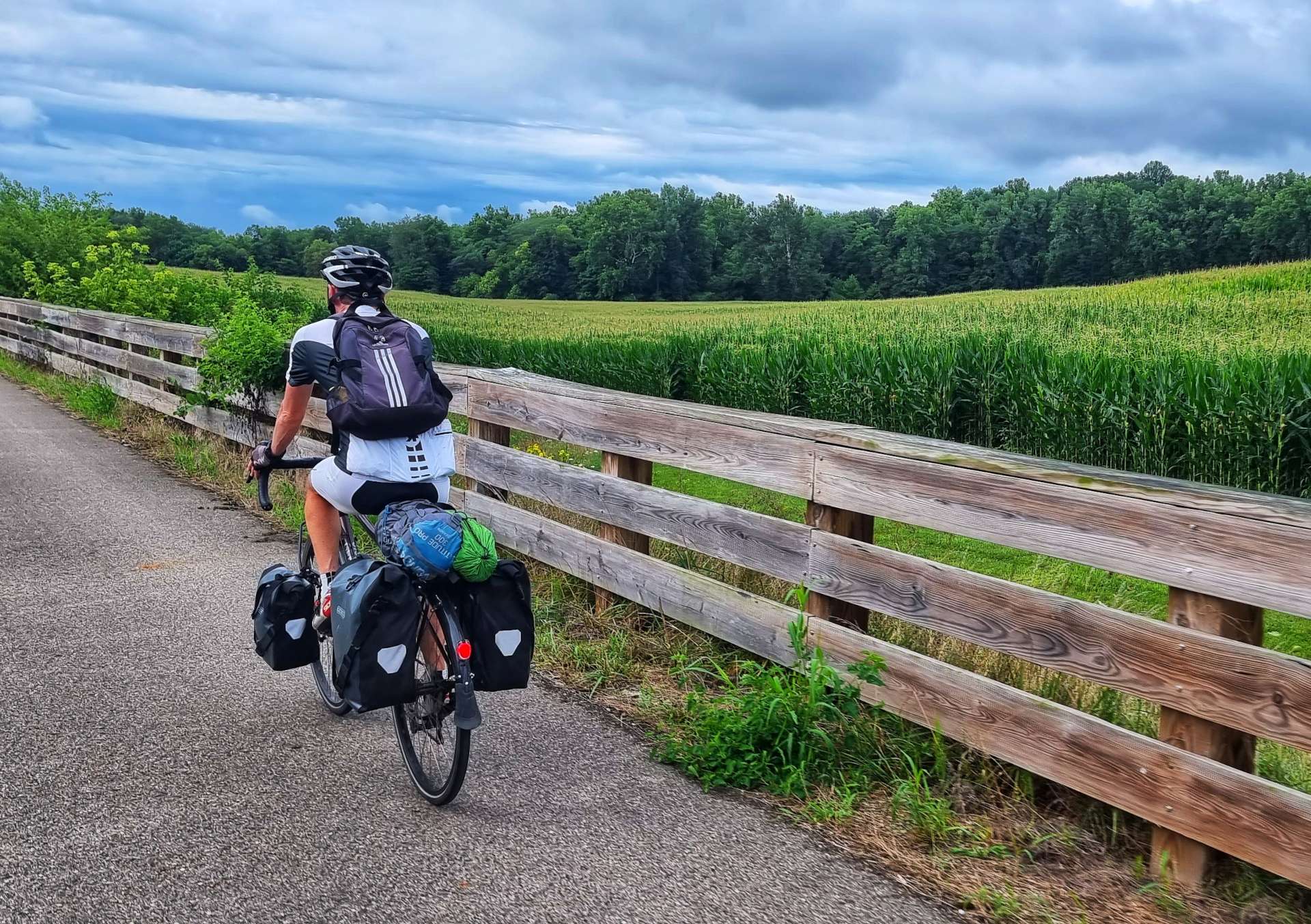 We had another 70+ mile day in the saddle planned, so were on our way by 9am, passing the city’s water tower on the way to picking up the Nickel Plate Trail. This is another Rails to Trail initiative & the 40 mile paved cycle path connects Rochester to Kokomo via the old Norfolk Southern Railroad route.