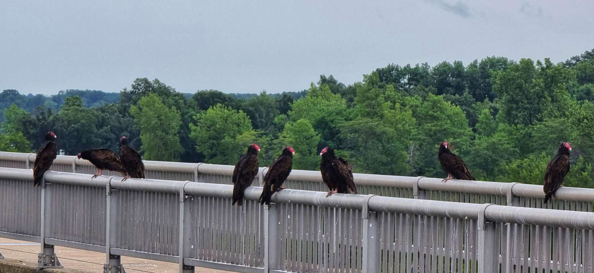 However, this wasn’t what held our attention today, interesting as it was – you may see some small black blobs in the railings in the photo above. There was a wake of 8 turkey vultures perched on the dam railing & they seemed totally unimpressed by 2 skinny Brits in cycling kit stopping to gawk at them.