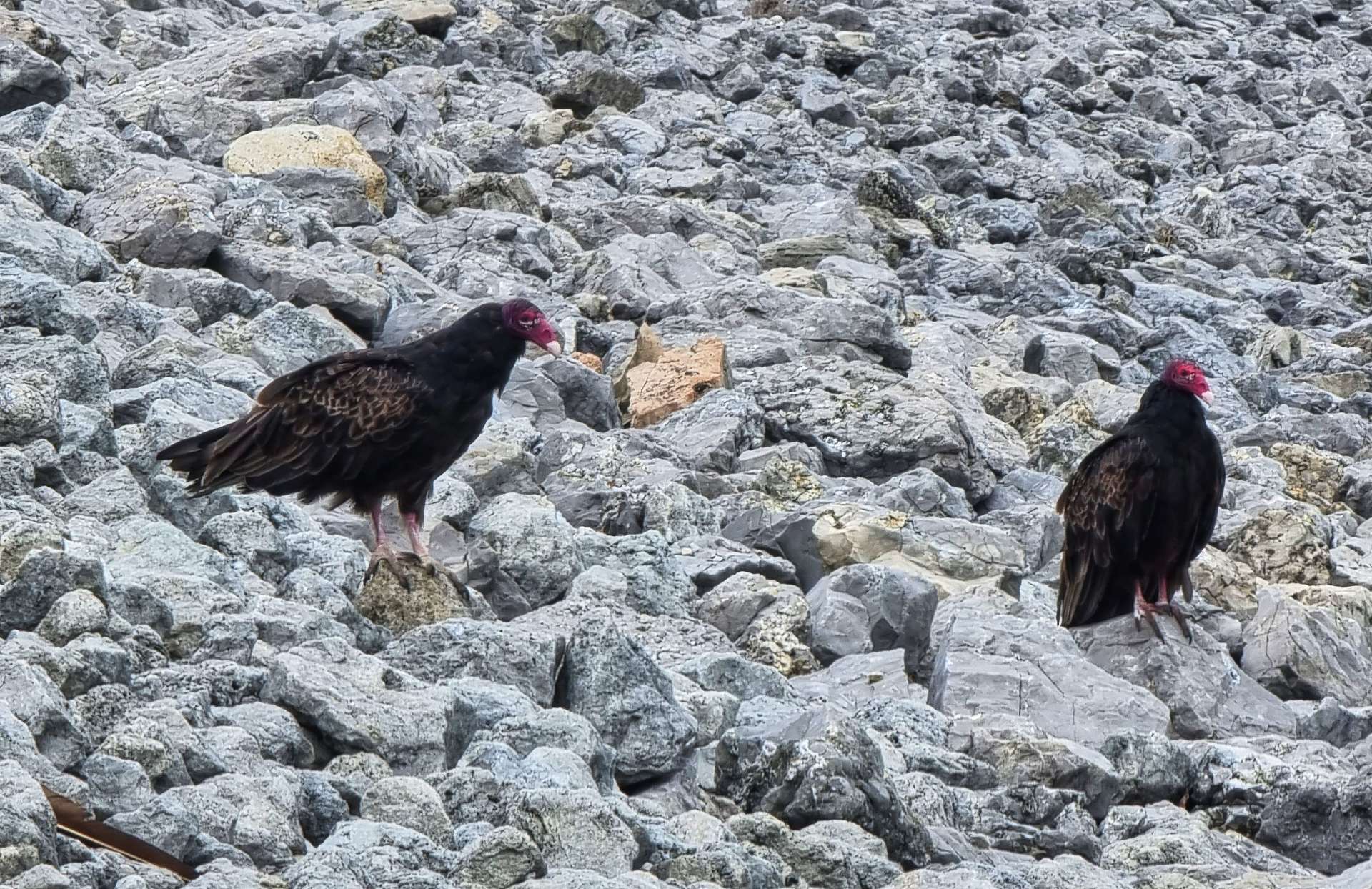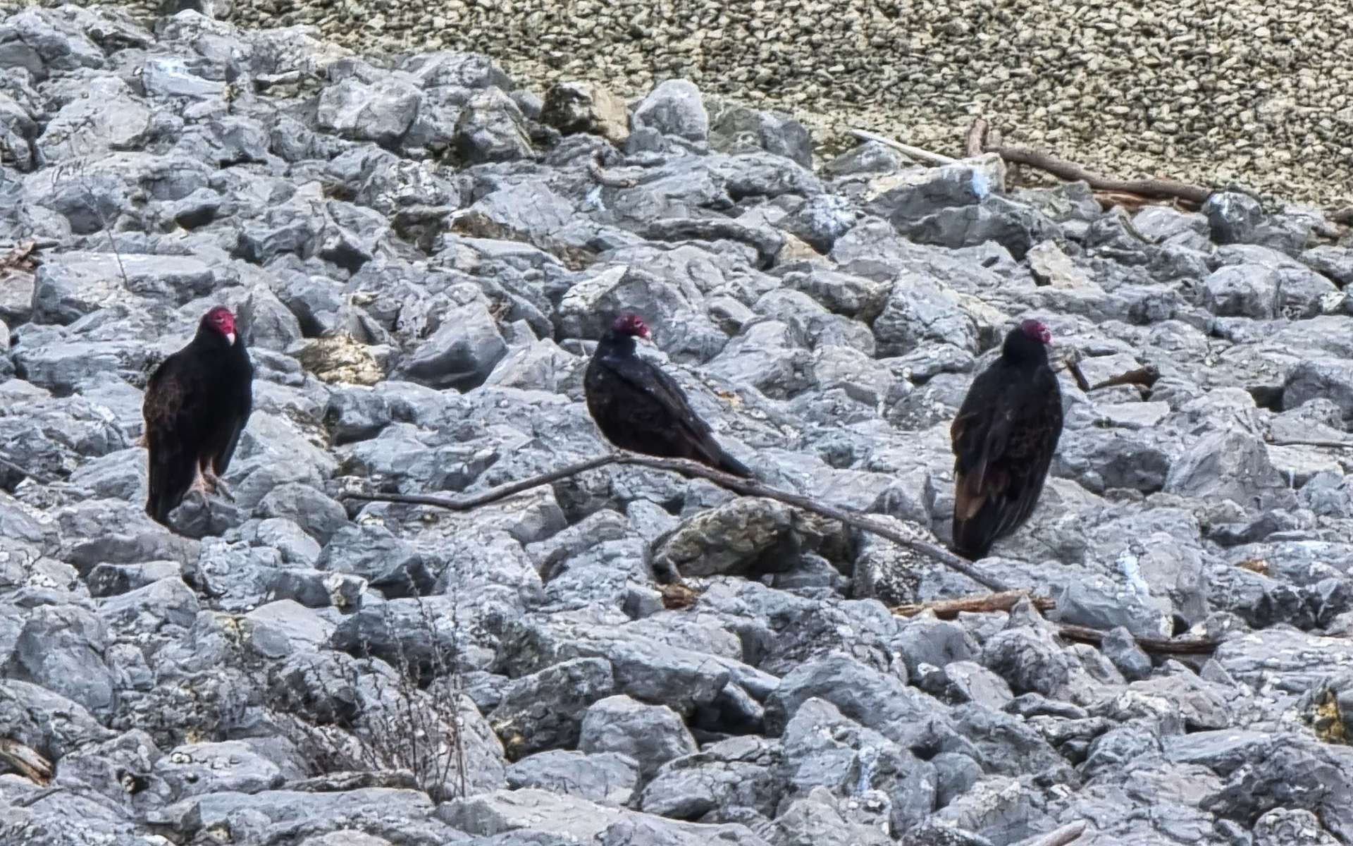 Just a hundred yards or so along the dam, there were a few committees of turkey vultures with between 3 & 6 birds all congregating on the stones. We were just missing a kettle of them flying, but seeing so many birds in such a small area was a rare treat. A little known fact is that turkey vultures have feet that resemble chickens rather than other birds of prey. As a result they normally feed off carrion that has been dead for between 12 & 24 hours. In desperate times they will hunt small reptiles & rats, but this is quite uncommon.