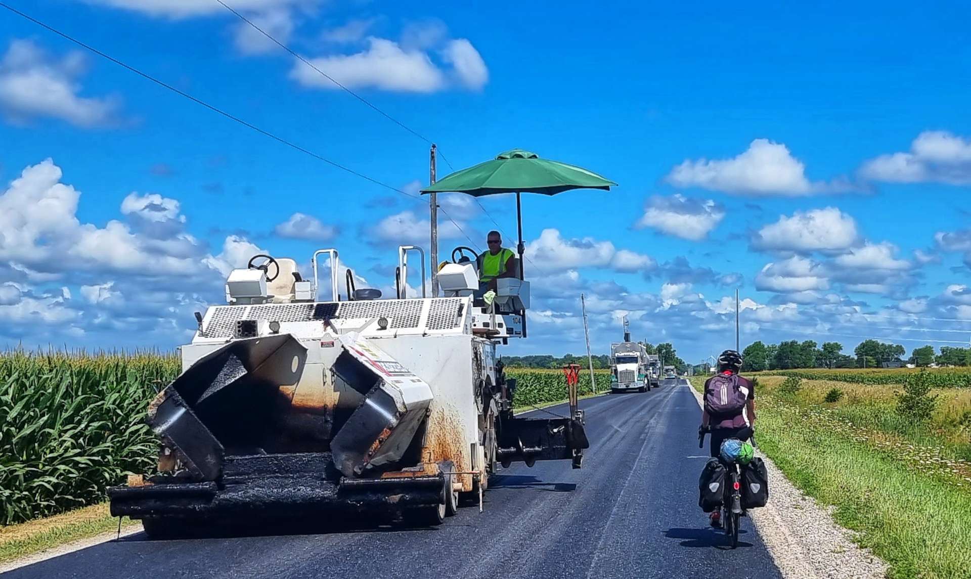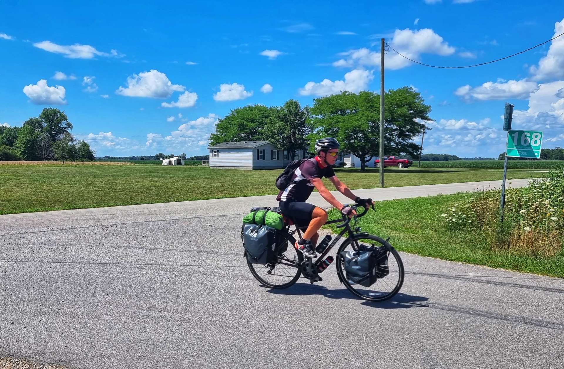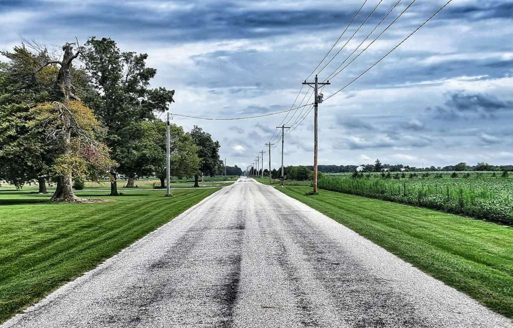 New tarmac had been laid recently & as we cycled along we could feel the road becoming more sticky, as the tar was still warm! As we neared the end of the new road, the road workers had finished for the day & were heading towards us. Baldwin is one of six ghost towns situated in Ohio, near to the Indiana border, but from later research there doesn’t appear to be much to see, so I’m glad we didn’t detour to try & find it!