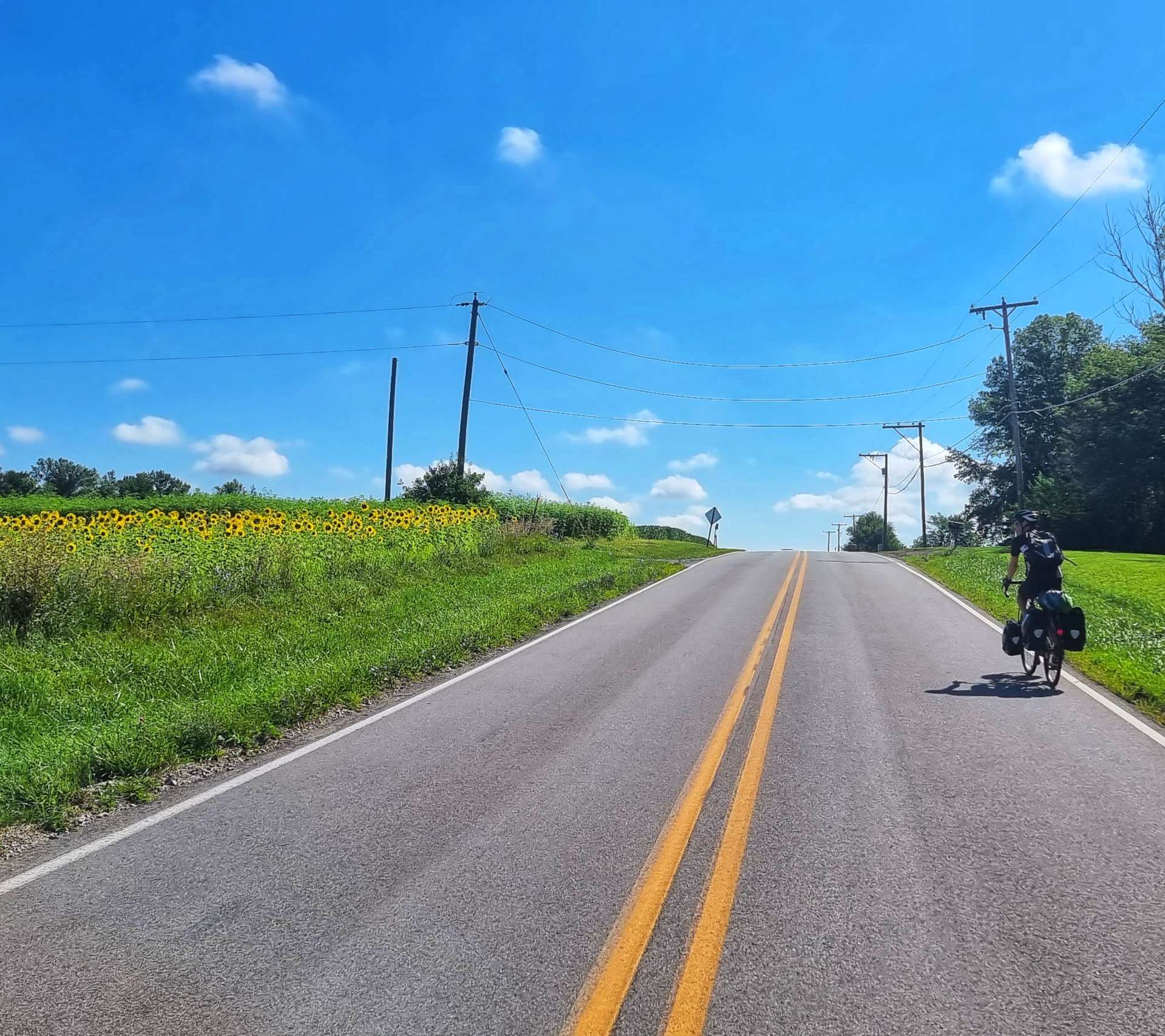 As I got closer, I realised it was a small field of sunflowers – I don’t know why, but they always make me feel happy & bring a smile to my face. When I ride in the UK, there’s a field near Lacock that is turned over to sunflowers every summer & I always look forward to riding past it – I may also enjoy the coffee & cake stop just across the road!