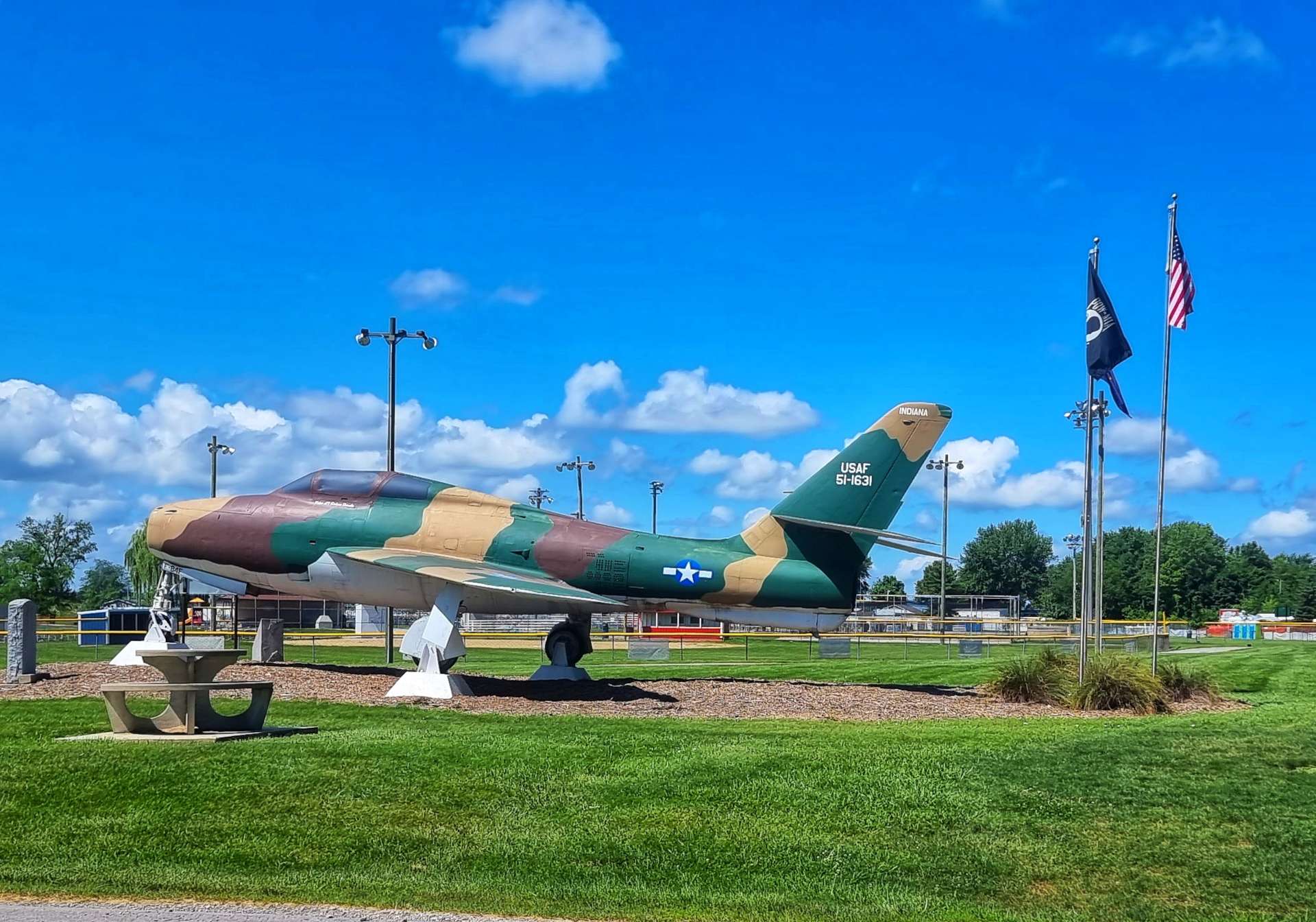 We continued on our way & as we reached Monroeville we saw our 2nd jet plane of the day (there was an identical one in Hoagland, but it had electricity cables in front of it, so I couldn’t get a decent photo). This F-84F was built in 1951 by General Motors & Republic Aviation & was eventually assigned to the 122nd Tactical Fighter Wing just outside Fort Wayne, Indiana. It’s now based outside the Monroeville Community Park & has pride of place.