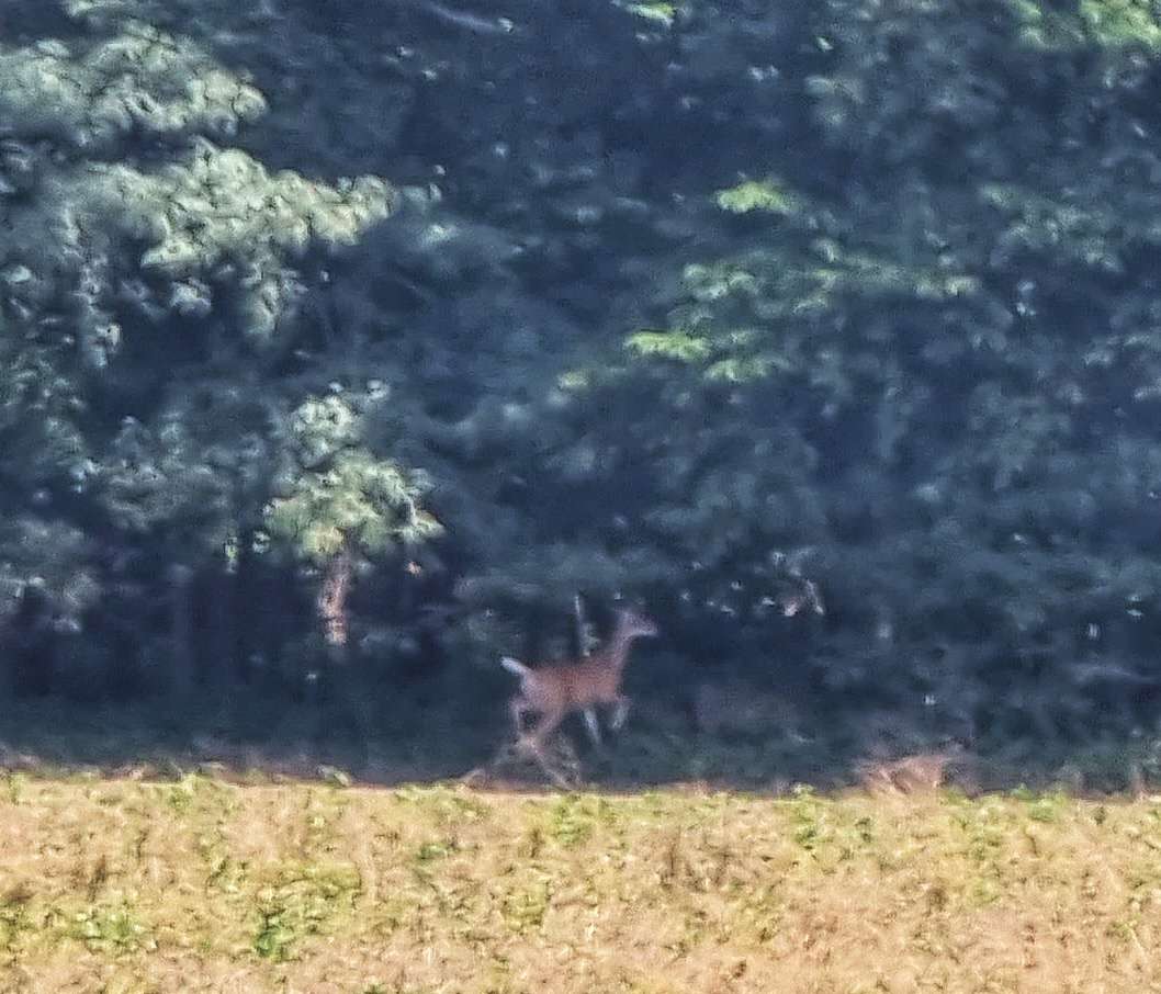 I also caught a fleeting glimpse of a white-tailed deer way off in a field. Just as I was getting ready to take a photo the deer was spooked by something & I ended up with an unexpected but very welcome action shot of the deer, mid-bound!