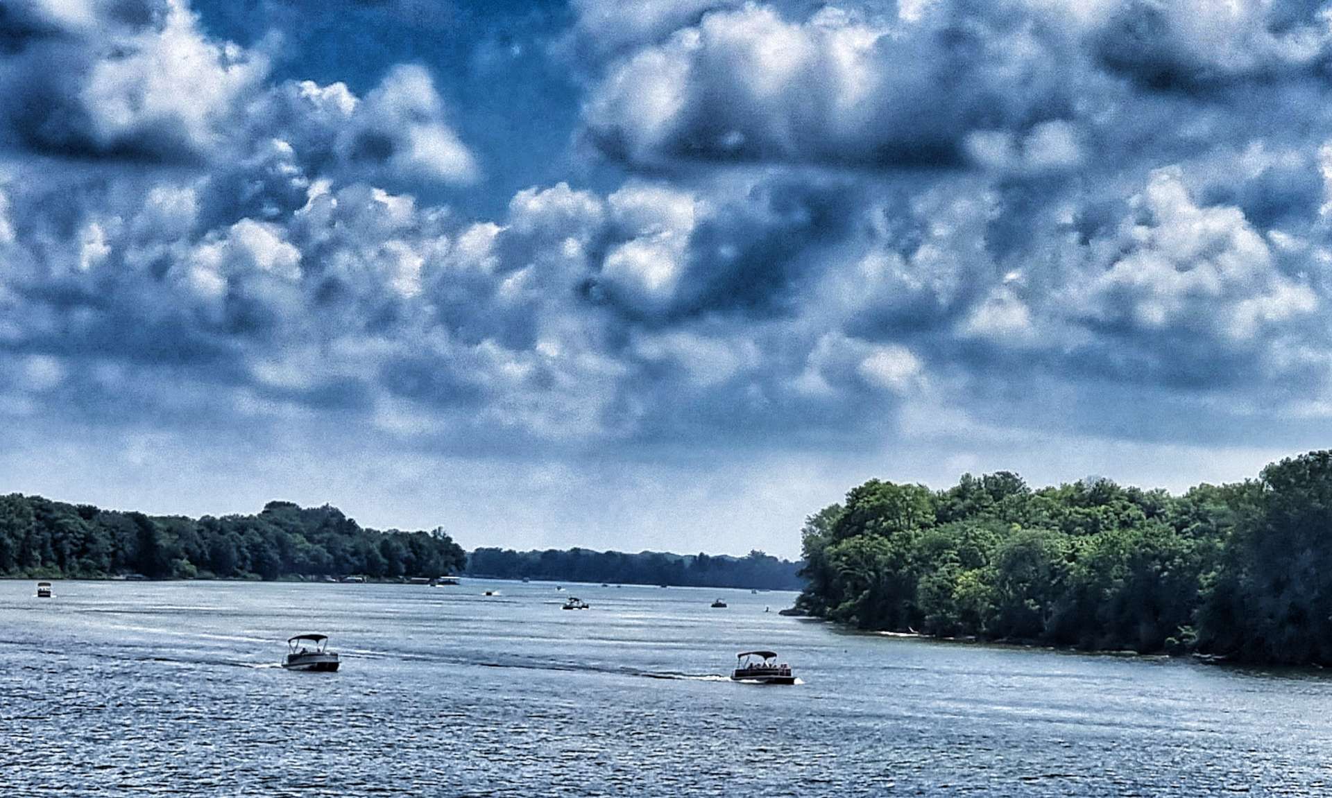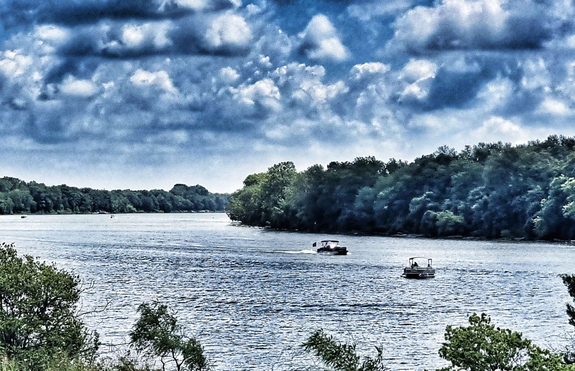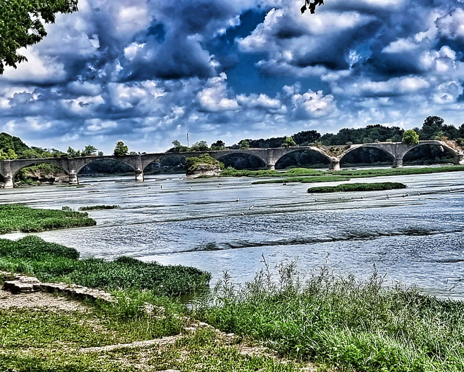 The river had been hidden from view since Independence, but it was worth waiting for it to reveal itself again. There were tens of pleasure craft ploughing their way up & down the river. We were cycling along the left bank, so we were overlooking the river & had great views in both directions.