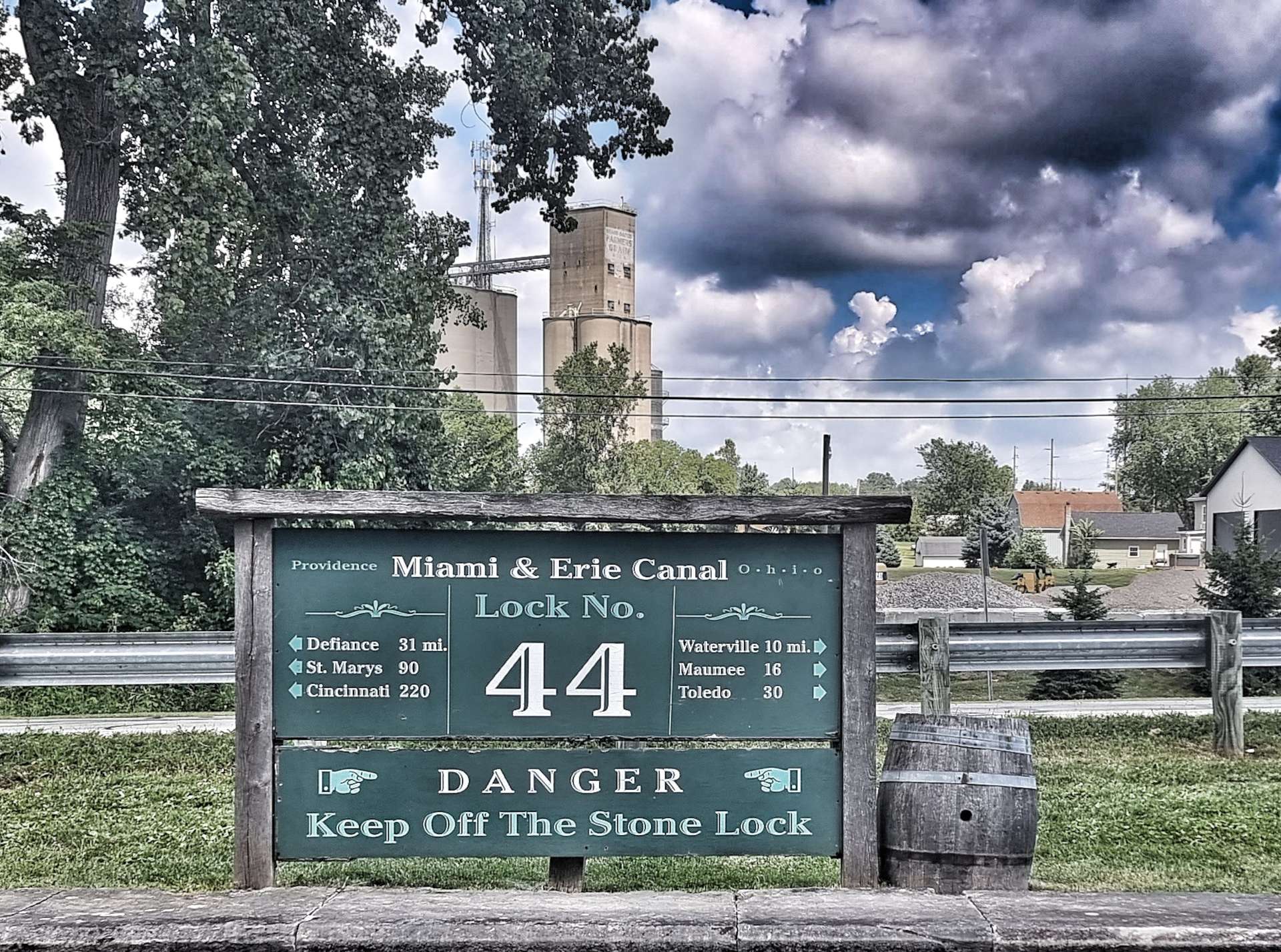 I was aware that at some point today we’d be picking up a gravel trail, but I was still surprised (in a very good way), when we arrived in Providence & stumbled on the Miami & Erie Canal. Canal boats once carried goods & people the 249 miles between Toledo & Cincinnati. We got a sense of what canal travel might have been like along a renovated section of canal, complete with lock.