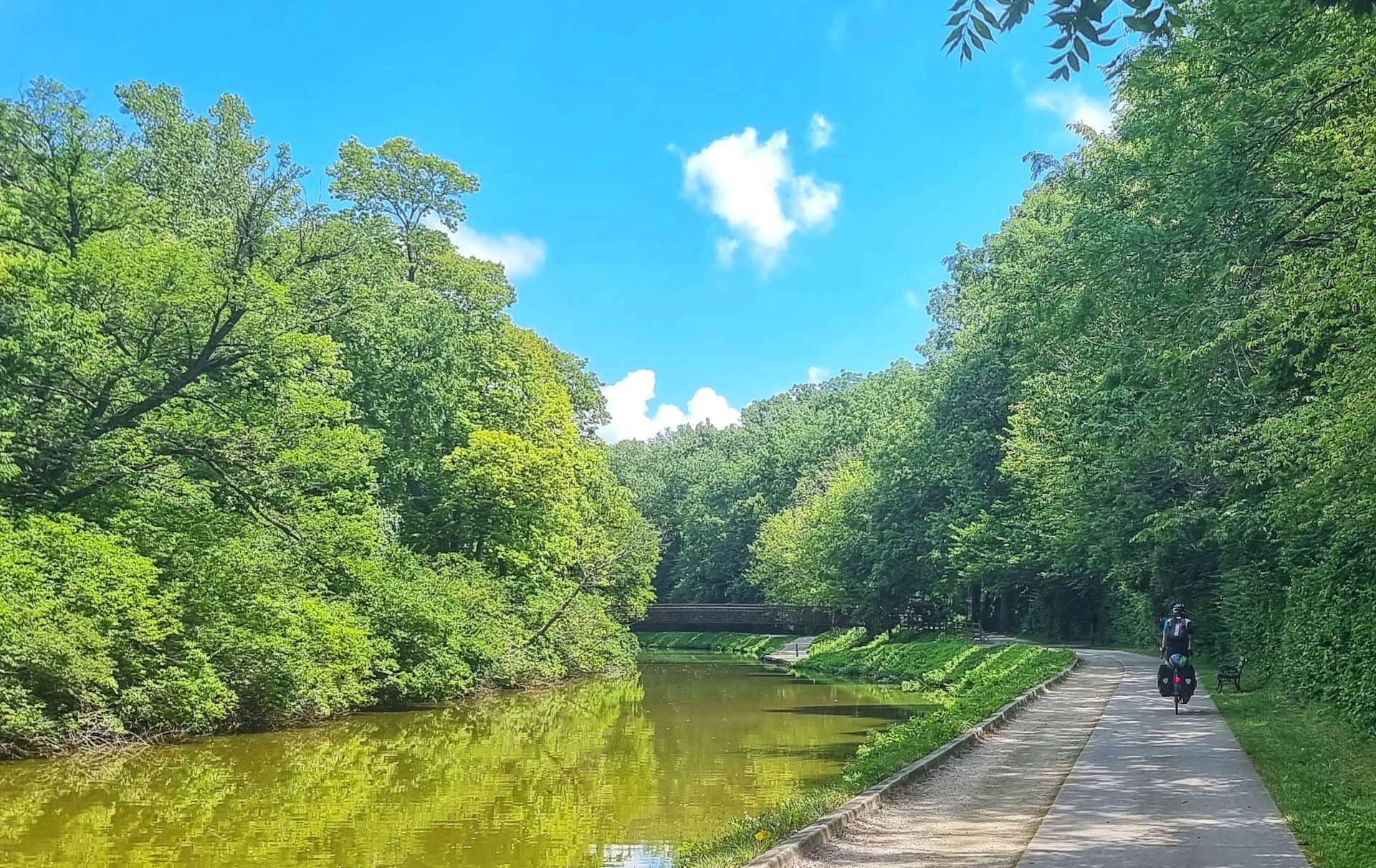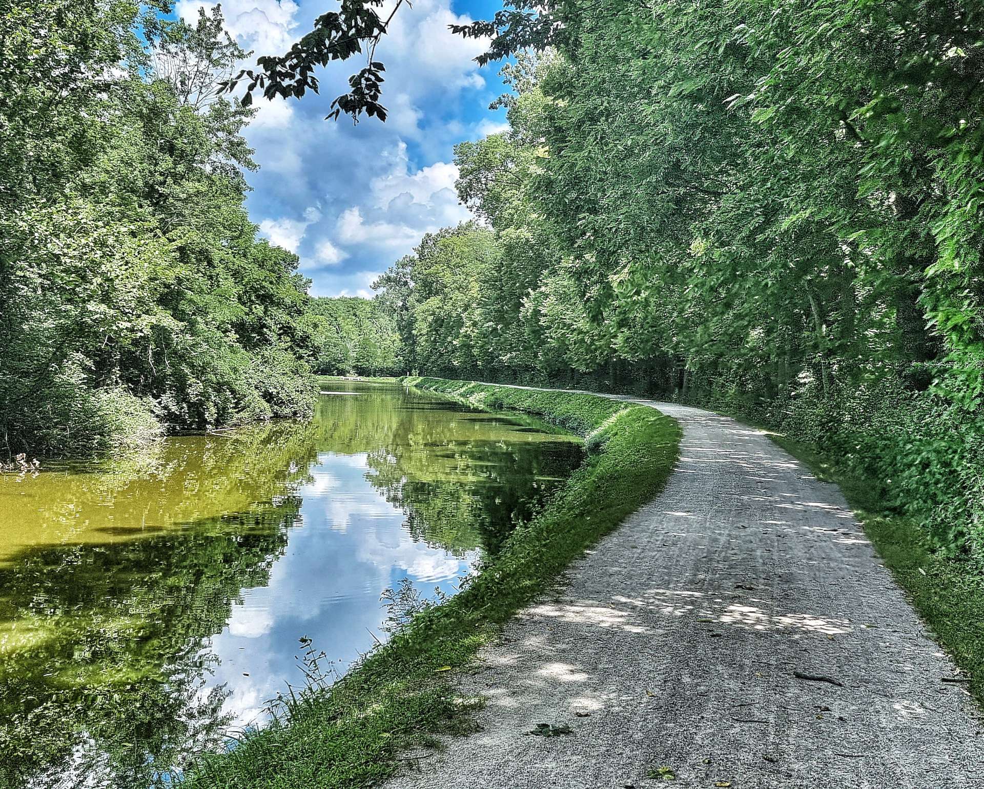 This was also our gateway to the Towpath Trail, which follows the remains of the Miami & Erie Canal towpath for 8 miles to Farnsworth Metropark in Waterville. Initially we were on a paved surface, but it soon became crushed limestone & gravel. We were both happy riding on the gravel today, me because I genuinely enjoy it & Sean because it gave protection from the fierce sun overhead!