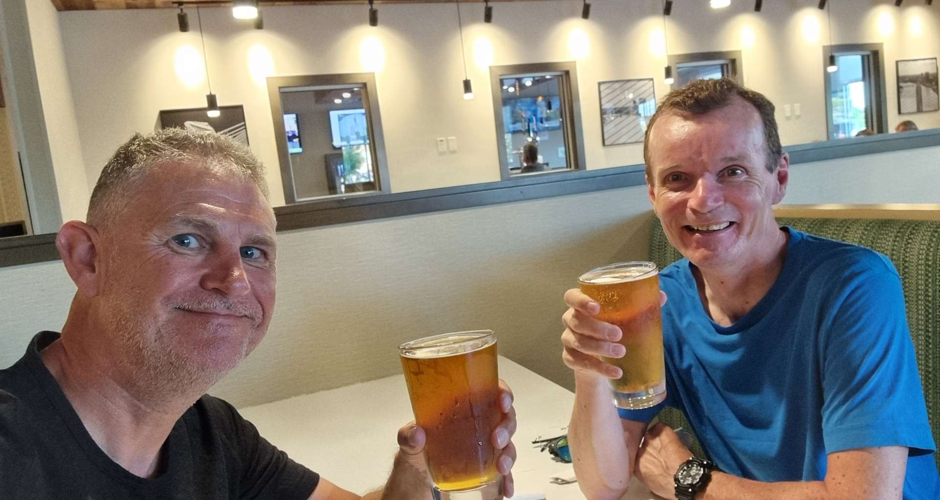 As it’s a Friday night, we found a grill/bar just across the road where we could relax & toast fellow Friday Beer Club members around the world! Apologies for the awful photo, we had red lights shining on us.