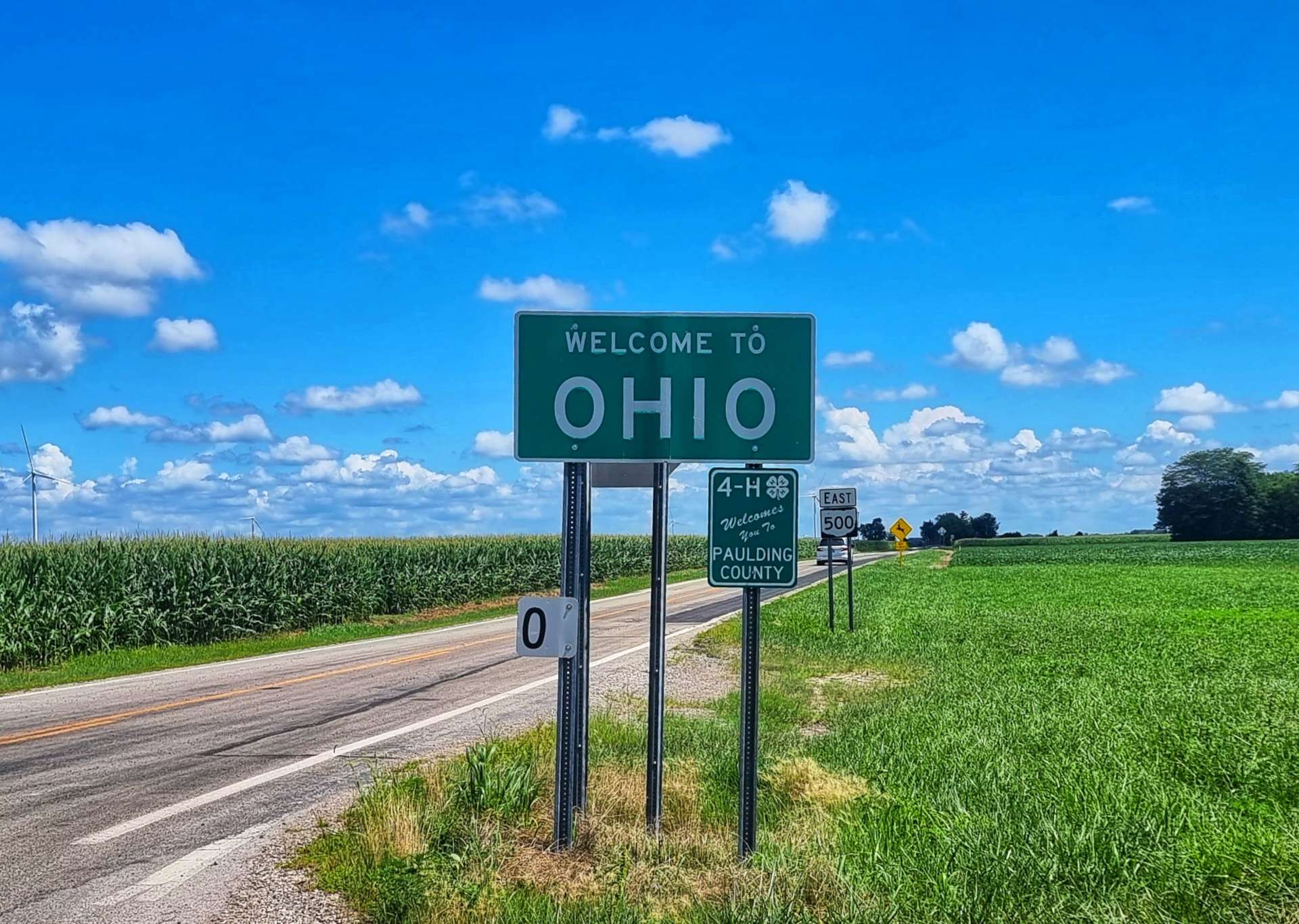 As we turned onto OH500 heading East, we crossed into Ohio for real. The only obvious difference between Indiana & Ohio was the wind farm, as the crops continued to be corn & soya beans.